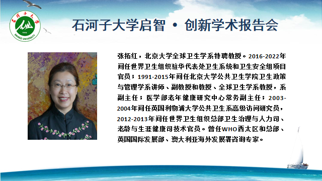 啟智 ? 創新學術報告會匯聚國內公共衛生領域的頂尖專家學者,共同探討公共衛生領域的最新研究成果、前沿技術和熱點問題。報告會圍繞全球健康挑戰、健康老齡化、傳染病流行病學方法與應用、醫學教育創新背景下的學生培養內容進行探討,旨在加強學術交流,促進公共衛生學科的發展,提升我校公共衛生教育和研究的水平。