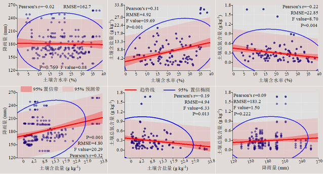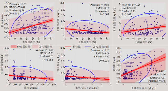 圖1 瑪納斯河流域土壤水鹽與養(yǎng)分的相關(guān)關(guān)系(南部山前沖積扇、中部綠洲平原、北部古爾班通古特沙漠)