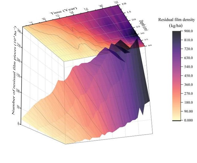 圖2 瑪納斯河流域殘膜密度與殘膜片數(shù)的時(shí)空分布及累積特征