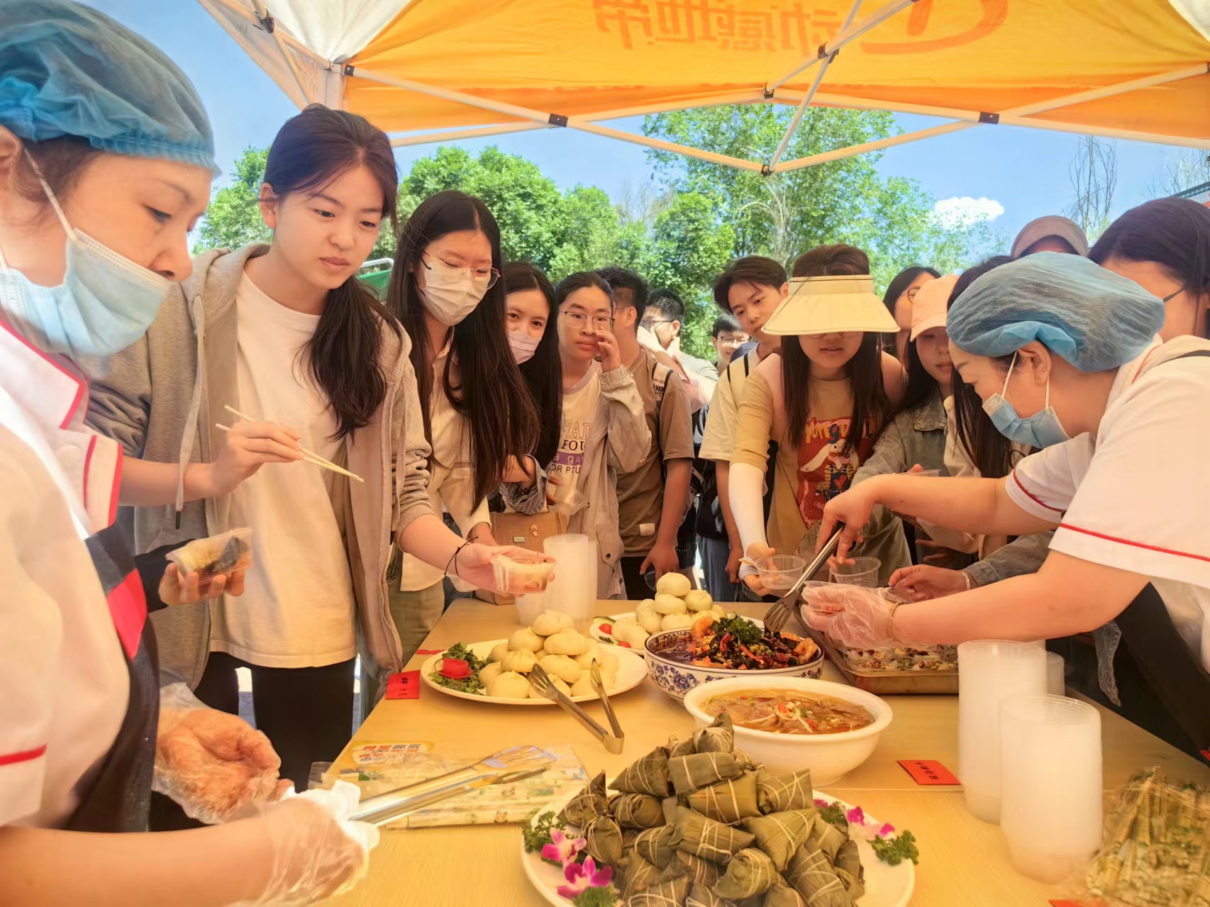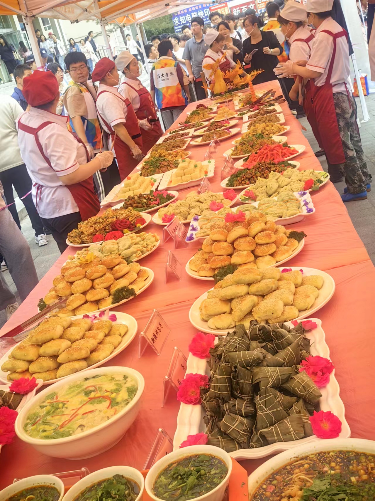 展示現(xiàn)場廚師們紛紛亮出絕活,上百種美味佳肴讓人目不暇接。地方特色小吃交相輝映,滿足了師生們的味蕾。此外,端午未到,粽香已飄,各式美食讓現(xiàn)場氣氛熱鬧非凡,粽香也為這濃濃氣氛增添了濃墨重彩的渲染。