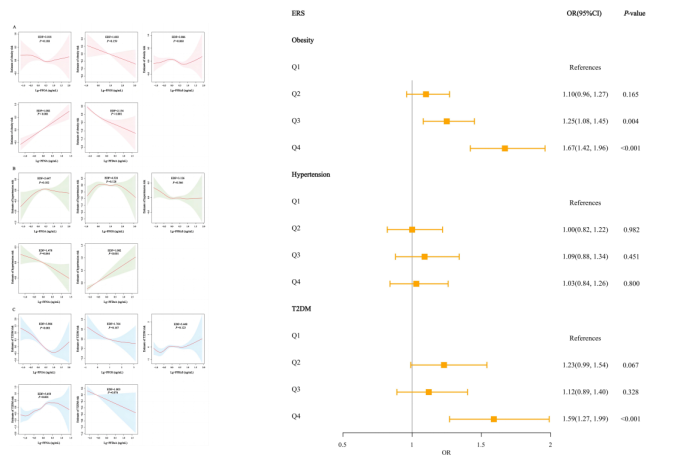 圖2. PFAS單一和聯(lián)合暴露與肥胖及其合并癥的關(guān)聯(lián)