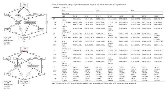 圖2 基于結構方程的常規耕作和深垂直旋耕對棉花產量的影響(上);