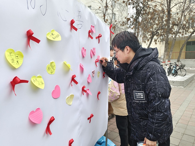 活動(dòng)展板上寫滿同學(xué)們別出心裁的防艾寄語(yǔ),文字真摯、情感熾熱,或鏗鏘有力表防艾決心,或溫馨細(xì)膩訴健康期許,構(gòu)成一道獨(dú)特亮麗的“防艾心聲”風(fēng)景線。