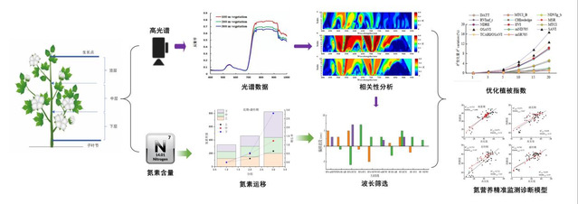 該專利創新性的提出了一種滴灌棉花氮營養虧缺診斷方法,較目前現有的氮營養遙感監測診斷方法相比,引入氮素敏感葉層關鍵指標,通過研究不同施氮水平下的滴灌棉花氮素運移規律來挖掘氮營養敏感葉層,明確了以中層與下層葉片作為早期監測氮素虧缺的敏感葉層更具優勢,同時進一步結合氮營養指數,構建了滴灌棉花氮營養虧損診斷模型,為棉花生產化肥減施增效提供重要技術支撐。