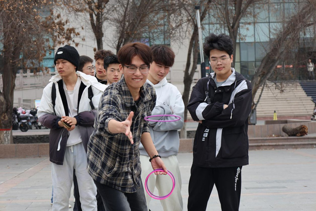 育人育才廣場上,奶茶免單券、萌趣玩偶、知識盲盒等獎品鋪陳一地,引得學子摩拳擦掌。3月22日至23日下午,套圈現場化作歡樂海洋——有人精準命中目標,引發陣陣喝彩;有人“手殘”卻套中滿地笑聲?!疤撞恢歇勂?,也能套中快樂!”一些同學舉著空圈自嘲,周圍爆發善意的哄笑。