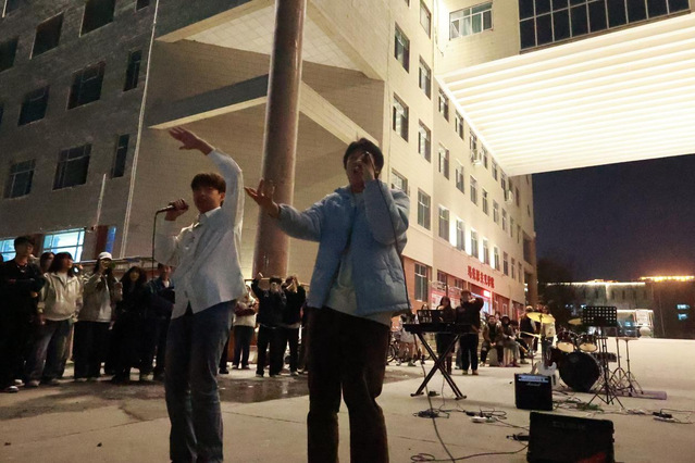 3月22日、23日晚,馬克思主義學院與外國語學院前門廣場化身露天音樂殿堂。燈光如星子墜落,貝斯的震顫掀起電子風暴,薩克斯的慵懶律動撩撥心弦,民謠歌者的溫柔吶喊喚醒沉睡的春夜。主唱SOLO秀點燃全場,開場表演引爆尖叫。