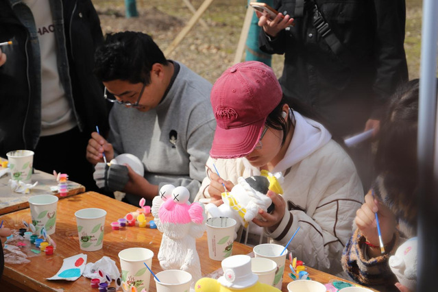 涂繪娃娃的桌旁,純白石膏被染成斑斕的童話世界。有人畫下萌態可掬的精靈,有人描摹振翅欲飛的蝴蝶,指尖流轉的不僅是色彩,更是未被時光磨滅的童真。