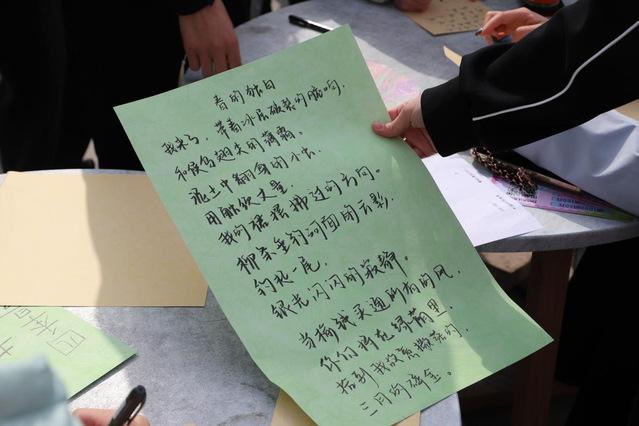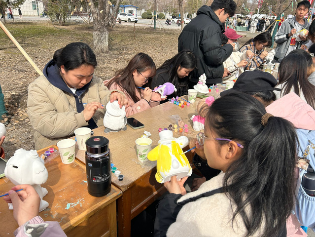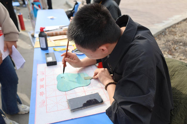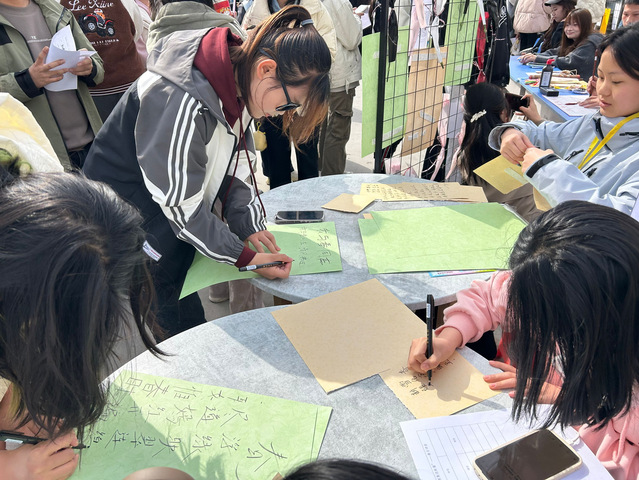投壺區木矢破空的脆響,套圈攤“神之一手”的歡呼,祈愿墻上隨風輕舞的書簽……每一個瞬間都被定格成詩。有人寫下“愿考研上岸”,有人悄悄祈愿“邂逅一場心動”,墨跡未干的期許,在春日的暖陽下悄然生根。