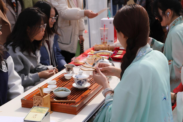 茶藝表演的氤氳里,漢服佳人素手烹茶,茉莉清茗入口,唇齒間是《茶經》的余韻。猜茶謎、贏書簽,茶煙裊裊處,有人輕聲念出“且將新火試新茶”,恰似與陸羽的一場隔空對話。