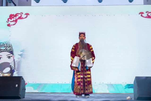 戲迷票友協(xié)會的同學們化身梨園新秀,分上下兩場為觀眾獻上《空城計》《武家坡》《貴妃醉酒》等八出經(jīng)典好戲。他們婉轉(zhuǎn)悠揚的唱腔,細膩靈動的身段,將諸葛亮的足智多謀、王寶釧的忠貞不渝、楊貴妃的雍容華貴詮釋得淋漓盡致,扎實的戲曲功底贏得現(xiàn)場陣陣喝彩。隨著鼓點起落,同學們的精彩演繹讓觀眾仿若穿越時空,沉浸式體驗傳統(tǒng)戲曲的獨特韻味,感受千年文化的魅力。