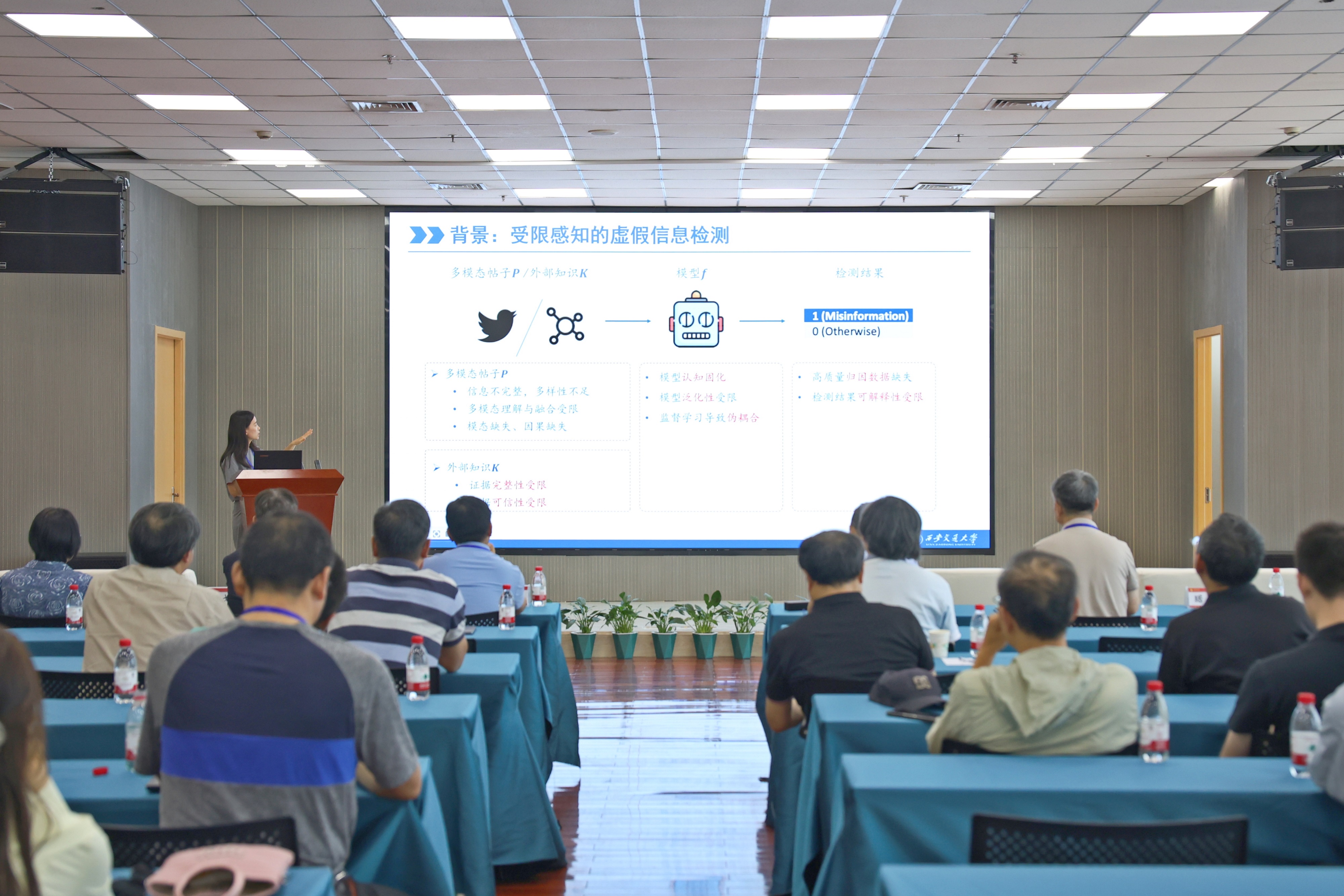 開(kāi)幕式后,中國(guó)科學(xué)院外籍院士、深圳計(jì)算科學(xué)研究院首席科學(xué)家、英國(guó)愛(ài)丁堡大學(xué)首席教授樊文飛作了題為《迎接AI挑戰(zhàn):構(gòu)建下一代基礎(chǔ)數(shù)據(jù)軟件系統(tǒng)》的報(bào)告;浙江師范大學(xué)杰出教授、澳大利亞維多利亞大學(xué)名譽(yù)教授張彥春作了題為《智慧醫(yī)療:大數(shù)據(jù)/AI技術(shù)在疾病監(jiān)測(cè)預(yù)警及健康管理的創(chuàng)新應(yīng)用》的報(bào)告;東京科技大學(xué)計(jì)算機(jī)科學(xué)系副教授曹洋作了題為《大語(yǔ)言模型微調(diào)中的隱私危險(xiǎn)與保護(hù)》的報(bào)告;西安交通大學(xué)教授羅敏楠作了題為《受限感知的多模態(tài)虛假信息檢測(cè)》的報(bào)告;石河子大學(xué)教授周杰作了題為《人工智能在新疆農(nóng)業(yè)的創(chuàng)新應(yīng)用》的報(bào)告。