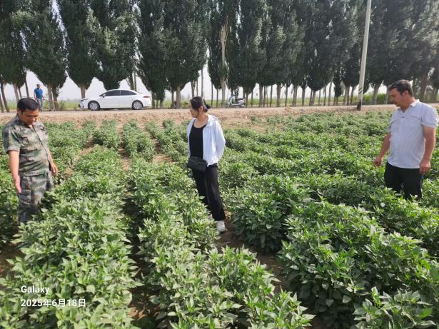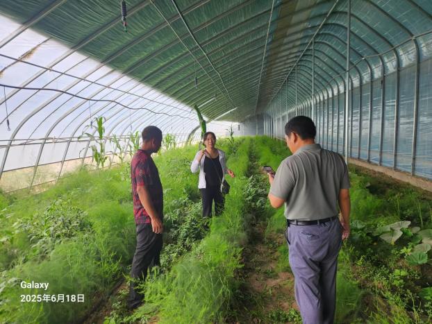 2025年6月18日,石河子大學特色蔬菜科技特派員服務團隊走進第三師45團開展蔬菜花果期栽培技術服務。此次服務針對辣椒-孜然套種模式下孜然的長勢、收獲技術及產量等給出了增加孜然密度,改換孜然品種等建議。結合辣椒花果期的水肥管理提出了減氮增磷保根的技術方案。對大棚蘆筍給出了培土、打頂和生根肥灌根的管理方案。