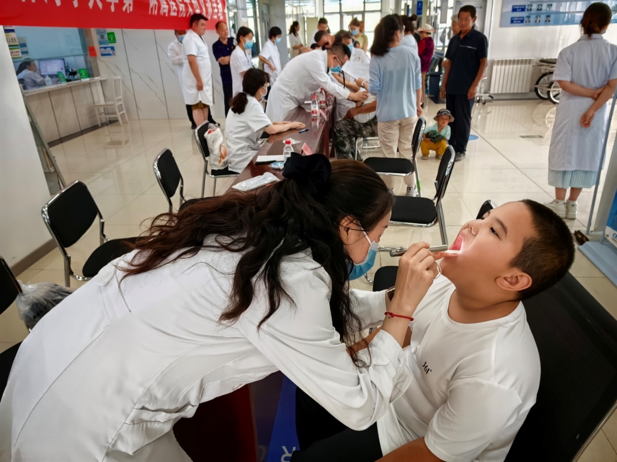7月16日,服務團隊首站抵達邊境團場十師一八六團,次日一早團醫院開展義診。此次服務匯聚了消化內科、內分泌科、兒科、口腔科、感染科、腎病科、腫瘤內科共7個重點科室的近20名醫護人員,其中張世杰副院長、宋麗秀、趙丹、馬曉平、仵楠等均為各領域臨床經驗豐富、專業技術精湛的骨干力量。活動精準對接當地群眾就醫需求,提供涵蓋多系統疾病的專業診療服務,當日服務群眾約60人,發放健康科普手冊40余冊,有效緩解了基層群眾看病遠、看病難的問題。