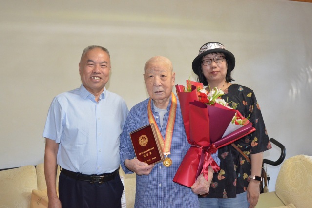 為紀念中國人民抗日戰爭勝利80周年,傳承偉大抗戰精神,8月19日至20日,校黨委離退休工作部(離退休工作處)部長(處長)孫星海,副部長(副處長)王炳舉、王慶一行帶著校黨委和全校師生的祝福,分別為我校白海峰、韓楓2位八路軍老戰士頒發“中國人民抗日戰爭勝利80周年”紀念章,向為國家和人民作出卓越貢獻的離休老同志們致以崇高敬意和節日問候,并為他們送上了精心準備的慰問品。