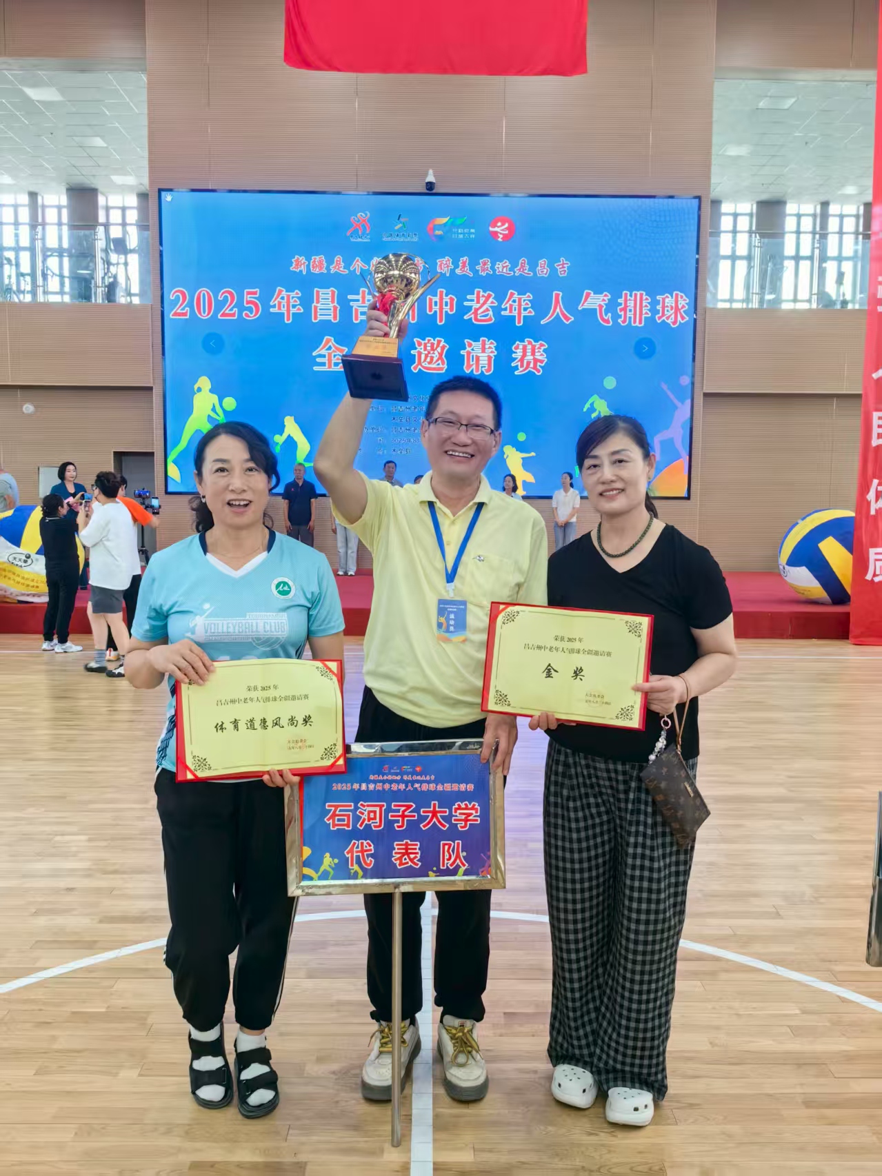 在為期兩天的激烈角逐中,石河子大學代表隊面臨著不小的挑戰。主力隊員因故缺席,隊伍實力受到一定影響。但隊員們并未被困境打倒,她們憑借著頑強的拼搏精神、精湛的球技,以及多年磨合形成的默契配合,在賽場上敢打敢拼、沉著應對,最終一路過關斬將取得第三名,榮獲賽事金獎,還獲評“體育道德風尚獎”,為學校贏得了雙重榮譽。充分展現了學校離退休教職工在氣排球運動領域的卓越風采和較高競技水平,彰顯了學校在老年體育文化建設中的工作成效,為推動全疆中老年體育事業發展作出了貢獻。