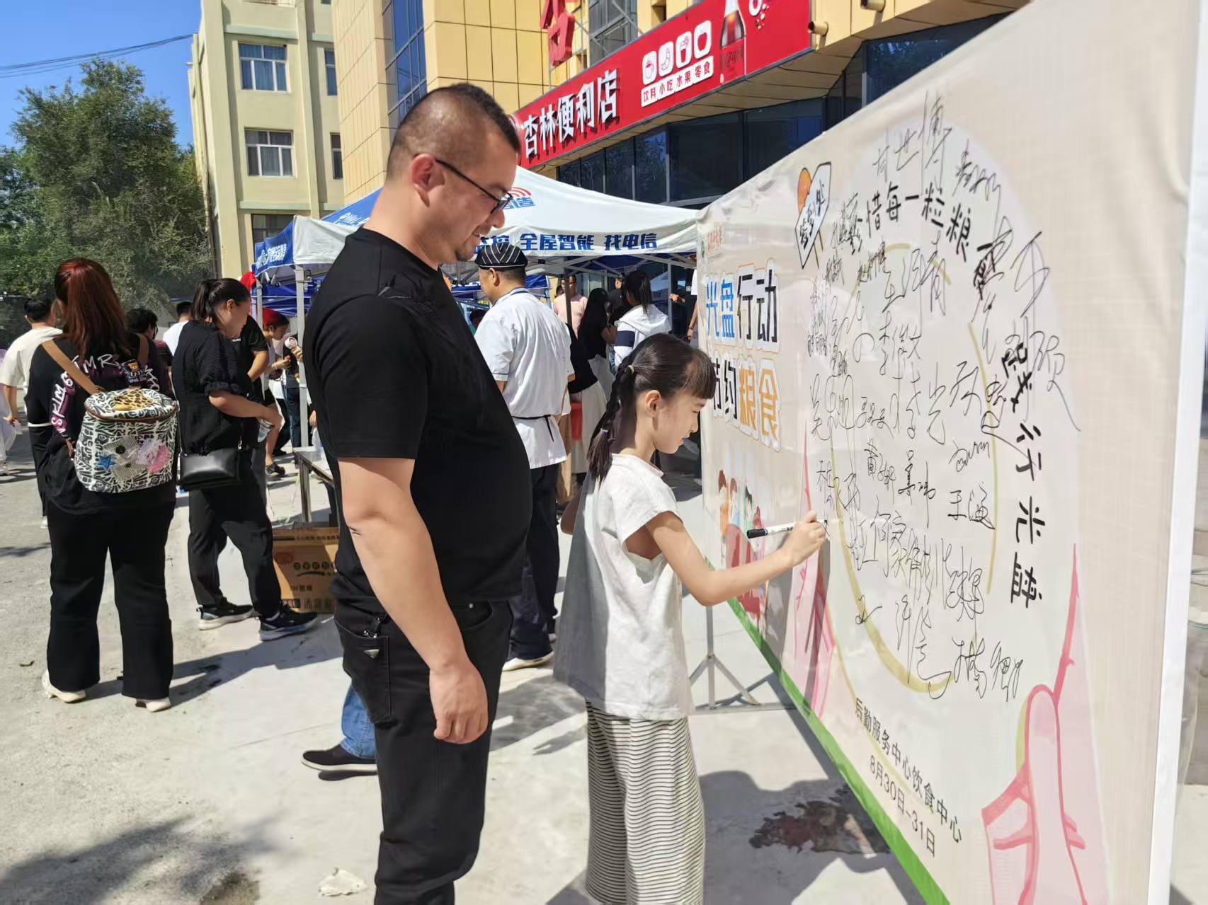 活動現(xiàn)場的“光盤行動”簽名墻前也格外熱鬧,不少新生和家長駐足,簽下自己的名字,以實際行動承諾珍惜每一粒糧食,傳承勤儉節(jié)約的傳統(tǒng)美德。