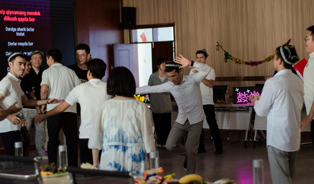 歡送會(huì)上,師生共同觀看記錄留學(xué)生活的視頻,重溫初識(shí)中國(guó)的好奇探、歡度春節(jié)的體驗(yàn)和學(xué)習(xí)書(shū)法的樂(lè)趣。青云民體社的《別樣舞獅》、學(xué)生吳長(zhǎng)歡的武術(shù)表演《長(zhǎng)拳》,中烏歌曲聯(lián)唱及投壺、你畫(huà)我猜等互動(dòng)節(jié)目,充分展現(xiàn)了中外文化的交融與青春熱情。留學(xué)生們還演唱了烏茲別克斯坦傳統(tǒng)歌曲,將現(xiàn)場(chǎng)氣氛推向高潮。